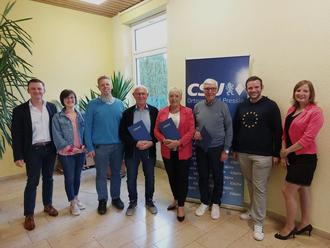 v.l.n.r. Bürgermeister Stefan Heinlein, 3. Ortsvorsitzende Katharina Zinner, 2. Ortsvorsitzender Andreas Hammer, die für ihre langjährige Mitgliedschaft Geehrten Winfried Remmert, Anita Swiduruk, Otmar Gerber, Europawahllistenkandidat Markus Oesterlein und 1. Ortsvorsitzende Susanne Heinlein.