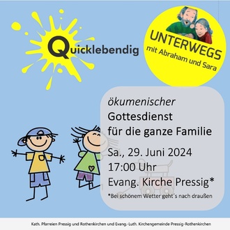 | 17 Uhr | Quicklebendig – ökumenischer Gottesdienst für die ganze Familie |