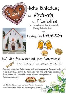| 9.30 Uhr | Familienfreundlicher Gottesdienst zur Kirchweih mit Verabschiedung C. Sehmisch |