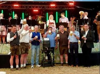 Der Samstag stand ganz im Zeichen der Dorfgemeinschaft – und der offiziellen Eröffnung mit dem Bieranstich durch Bürgermeister und Schirmherr Stefan Heinlein. Unter den Blicken der zahlreichen Festgäste sowie des Vorsitzenden der Dorfgemeinschaft, Heiko Kopp, griff der Bürgermeister zum Schlegel – und bewies nach einem leichten Fehlstart bei seinem ersten Amtsantritt im Jahr 2020 dieses Mal Treffsicherheit: Mit einem beherzten ersten Schlag und einem zweiten zum Nachjustieren des Hahns verkündete er unter großem Applaus „O’zapft is!“ und schenkte eigenhändig den Honoratioren ein. Der Gerstensaft floss in Strömen – die Festgesellschaft war bereit für einen weiteren großartigen Abend.
