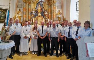 Ein besonderer Akzent des Gottesdienstes war die Anwesenheit der Friedensstandarte von Neuengrün, die monatlich innerhalb des Seelsorgebereichs Frankenwald von Pfarrei zu Pfarrei weiterwandert. Im Monat Juni war die Standarte in Posseck zu Gast – ein sichtbares Zeichen dafür, dass das Gebet für den Frieden nicht an einem Ort verharren darf, sondern lebendig weitergetragen wird. Die Gemeinde in Posseck nahm diesen Auftrag mit innerer Anteilnahme gerne an.