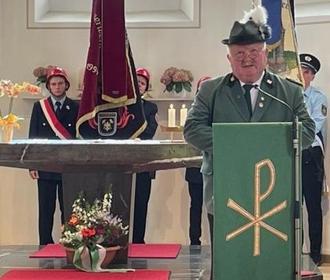 Der Schützenfest-Sonntag begann traditionsgemäß mit dem Festgottesdienst in der Marienkirche. Die „Urselaner“ Jagdhornbläser unter Federführung von Schützenbruder Franz-Josef Wich sorgten während des Festgottesdienstes für ein ganz besonders Flair. Das Totengedenken für alle gefallenen und verstorbenen Mitglieder des Kleinkaliber-Schützenvereines erfolgte wegen der Bauarbeiten am Ehrenmal im Gotteshaus. Die Ansprache hielt Kreis- und Marktgemeinderat sowie 2. Schützenmeister Reinhold Heinlein.