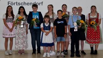Die Förtschendorfer Schützen feierten am letzten Wochenende im Juni ihr traditionelles Schützenfest. Am Samstag haben die jungen Gäste ihre Treffsicherheit im wahrsten Sinne des Wortes unter Beweis stellen können. Die beim Schüler- und Jugendschießen erzielten Ergebnisse ließen selbst eingefleischte Schützenfrauen und -Männer erstaunen. Den vielen jungen Teilnehmerinnen und Teilnehmern konnten am Schützenfest-Sonntag vom Vorstand die errungenen Preisgelder, die von 1. Bürgermeister der Marktgemeinde Pressig, Stefan Heinlein, gestifteten Pokale und der von Ehrenmitglied Karl-Heinz Kautsch gestiftete Jugendpokal überreicht werden.
