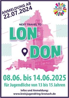 Wenn Du Lust hast London mit uns zu entdecken und im Juni nächsten Jahres zwischen 13 und 15 Jahre alt bist, melde Dich ab 19.07.2024 bei uns an! Die Fahrt kommt nur zu Stande, wenn sich mindestens 35 Teilnehmer:innen finden.