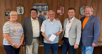 Vorsitzender Wolfgang Förtsch, sein Vorstandsteam und der 1. Bürgermeister Stefan Heinlein wünschten Hans Michel anlässlich einer Vorstandssitzung alles Gute und freuen sich auf viele weitere Jahre seiner Unterstützung.