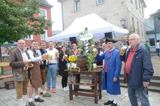 Ein Prosit der Gemütlichkeit“, nach gelungenem Anzapfen des ersten Bierfasses durch Bürgermeister Stefan Heinlein (2. von links) wurde ein kräftiger Schluck vom Gerstensaft getrunken und mit dem Zeremoniell eröffnete stimmungsvoll der Musikverein Rothenkirchen die „Ruotnkernge Biertouch“.