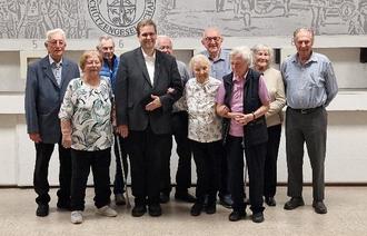 Beim Treffen im Schützenhaus: v.l. Reinhold Wolf, Agnes Pfadenhauer, Alfons Fehn, Dekan Pfarrer Detlef Pötzl, Josef Wachter, Lehrerin i.R. Maria Wachter, Pfarrer i.R. Wolfgang Scherbel (Marktzeuln), Magdalena Jungkunz, Anneliese Leicht und Hans Barnickel.