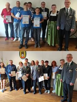 Später folgte die Siegerehrung des Wettbewerbs in den verschiedenen Schützenklassen. Hierbei sicherte sich ein Familien-Trio die besten Platzierungen: Ben Büttner belegte zum dritten Mal in Folge den ersten Platz in der Schülerklasse. Sein Bruder Dustin entschied die Juniorenklasse für sich, während Vater Mario Büttner den Wettbewerb in der Schützenklasse gewann. Ebenso erzielten Reiner Zapf (Altersklasse) und Heiner Nieblich (Seniorenklasse) Bestplatzierungen. Das Rennen um den begehrten „Saupokal“ gewann ebenfalls Reiner Zapf. Den Ehrentitel „Saukönig“ sicherte sich ein zweites Mal in Folge Dominik Kestel. Die beiden „Sautreiber“ (2. und 3. Platz auf der „Saukönig“-Scheibe) wurden Heiner Nieblich und Mario Büttner.