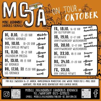 wir freuen uns, Euch das Monatsprogramm der Mobilen Jugendarbeit vorstellen zu können. Es gibt wieder viele spannende Aktivitäten für Jugendliche, die teils eine Anmeldung erfordern.