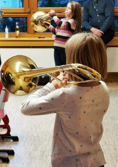 Viele Kinder sind neugierig auf die Instrumente und deren Klänge.