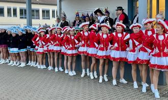 Das Bild zeigt: In Pressig stehen die Garden und Elferräte der Faschingsgesellschaften im Markt Pressig zum Sturm auf das Rathaus bereit.