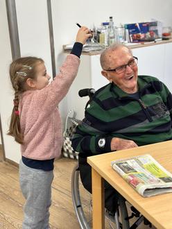 Sei es zum gemeinsamen Basteln, Kochen, Backen oder zu besonderen Anlässen wie Ostern, Muttertag, Weihnachten oder wie erst kürzlich zu St. Martin, bei dem die Kinder den Seniorinnen und Senioren die Legende des hl. Martin vorspielen. Ein besonderes Highlight dieses Besuches war das gemeinsame Musizieren zu einem St. Martinslied, bei dem Jung und Alt den Takt gemeinsam angaben.