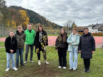 Die Grund- und Mittelschule Pressig war im Rahmen einer Social Media-Pflanz-Challenge vom Elternbeirat der Grundschule Steinbach nominiert worden, einen Baum zu pflanzen. Am Mittwoch, 29. Oktober 2025 war es so weit und der Fachlehreranwärter Johannes Fehn ging mit Schülern seiner Technikgruppe der 7. Klasse ans Werk. Nachdem vorher besprochen worden war, was man beim Pflanzen eines Baumes alles beachten muss, halfen alle zusammen und pflanzten einen Apfelbaum der Sorte „Gerlinde“. Stellvertretende Schulleiterin Sandra Hofmann bedankte sich bei Herrn Fehn, seinen fleißigen Schülern und dem Hausmeister Stefan König als helfende Hand im Hintergrund. Alle sind nun gespannt, wann die erste Apfelernte an der Schule stattfinden kann.