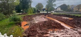 Der Bürgermeister gab einen Ausblick auf das, was nun entsteht: Ein naturnah gestalteter Weiher mit unregelmäßigem Uferverlauf, sanft abfallenden Böschungen und einer Lehmschicht zur Abdichtung, darüber eine Kiesschicht für klares Wasser. Der Zulauf erfolgt über die historische, neu aufgearbeitete Viehtränke. Eine neue Platzfläche mit Feuerstelle und Sitzgelegenheiten wird ein Treffpunkt für Jung und Alt. Unter dem Motto „Teich erleben – Spielen am und mit Wasser“ entsteht zudem ein moderner Spielbereich mit Matschzone, Trittsteinen, Brunnensäule und einer kindgerechten Viehtränke. Ergänzt wird die Anlage durch einen Kneipp-Bewegungsbereich, der zu Gesundheit und Aktivität einlädt.