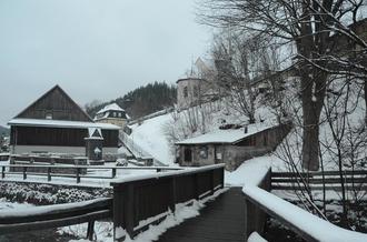 Die Bilder zeigen: Die bestehende Fußgängerbrücke in Förtschendorf über die Haßlach wird in Kürze abgerissen und durch eine überdachte Holzbauweise ersetzt.
