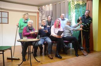 Darsteller und Rollen: Rüdiger Jungkunz (Manfred Schuster, Gemeindearbeiter, Chef des Arbeiterduos), Rita Vetter (Erika Schuster, Frau von Manfred), Steffen Bär (Rudi Bügel, Kollege und Freund von Manfred), Elke Fehn (Renate Bügel, Frau von Rudi), Maria Daum (Hannelore Grienseisen, Freundin des Hauses), Brigitte Löffler (Margarete Wahl, VHS- Leiterin), Daniel Bartsch (Adebar Bämbel, Dorfplatzplaner). Souffleuse: Chantal Szymala. Regie: Rita Vetter. Die Regisseurin freut sich besonders über ihre Schauspielgruppe die spürbar aus Spaß an der Freude ihre Rollen mit Leidenschaft einstudieren und auch spielen. Dabei wird alles ehrenamtlich inszeniert, auch die Kulissen und Ausstattung werden selbst hergestellt inklusive Bühnenbild.