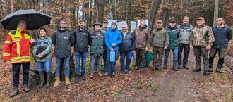 Landrat Klaus Löffler mit Vertreterinnen und Vertretern der unteren Jagdbehörde, der Flächeneigentümer, der Jägerschaft und des Amtes für Ernährung Landwirtschaft und Forsten Coburg-Kulmbach.