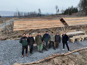 Seit seiner Eröffnung sorgt der Wiederbewaldungsparcours für großes Interesse. Bis dato führten die Förster des AELF Coburg-Kulmbach mehr als 1.000 Personen bei verschiedenen Veranstaltungen durch den Parcours. Dazu kommt eine unbekannte Zahl privater Besucher. Um ihnen den Besuch zu erleichtern, hatte der MarktPressig, die Idee für den Parkplatz. Finanziert von der LWF wurde dieser im Dezember 2024 fertiggestellt. Passend dazu hat das Personal des Jugendwaldheims Lauenstein zusammen mit Förster Rico Schädler zwei Schutzhütten mit Sitzbänken und Tischen aufgebaut. Diese laden zum Verweilen ein und die Besucher können die Umgebung auf sich wirken lassen.