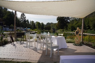 Mit Blick auf das glitzernde Wasser des Naturbads und eingebettet in eine ruhige, weitläufige Landschaft wird Ihre Trauung zu einem unvergesslichen Moment.