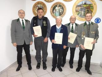 Bild 1: geehrte Mitglieder (v.l.n.r.): Vorstand Michael Reuth, Joachim Schneider (50 Jahre), Klaus Scholz (25 Jahre), Gerhard Fischer, Roland Backer (beide 60 Jahre)