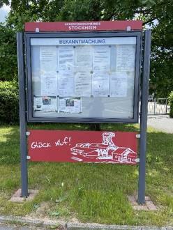 Auch die Ortsinformationstafeln der Gemeinde Stockheim wurden durch das Regionalbudget gefördert. Durch das Aufstellen der Tafeln in allen Ortsteilen, bietet sich die Möglichkeit die Bürgerinnen und Bürger vor Ort über das aktuelle Geschehen der Gemeinde zu informieren. Das Design der Tafeln ist an das Corporate Design der ILE Haßlachtal angepasst.