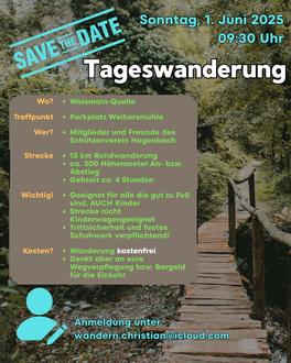 Wie letztes Jahr schon wollen wir gemeinsam wandern. Am 01.06.2025 ist eine Tageswanderung rund um die Weismain-Quelle geplant.