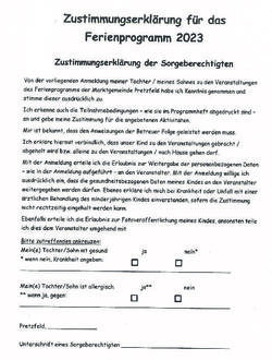 Die Anmeldung zum Ferienprogramm finden Sie auf Seite.. und die Zustimmungserklärung auf Seite..