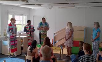 Verbunden wurde dieser Anlass mit der Segnung der Einrichtung. Um die Ökumene zu leben wurde die Segensfeier gemeinsam durch die kath. Pfarrer Herr Florian Stark, Herr Daniel Bara und die evang. Pfarrer der gegenüberliegenden Kirche Herr Samuel und Frau Linda Kost begleitet.