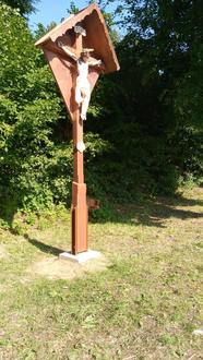 Der Korpus wurde uns 2020 von Thomas Uttenreuther gespendet und auf unsere Kosten restauriert. In Wiesenthau wurde er von Vorfahren von Heinrich Uttenreuther auf Grund eines Gelübdes um das Jahr 1875 errichtet. Ein Sohn der Familie war bei Bauarbeiten in ungelöschten Kalk gefallen und konnte vor dem Erblinden gerettet werden. Der Kreuzbalken wurde von Norbert Lipfert erstellt und gespendet. Die Bedachung und Einblechung wurde von der Firma Gantke gefertigt.