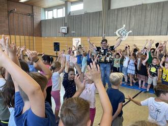 „Das klinget so herrlich, das klinget so schön…“ schallte es durch die Pretzfelder Walter-Schottky-Grundschule, denn es gastierte dort die Kinderoper Papageno aus Wien mit dem Stück „Die Zauberflöte“ von Wolfgang Amadeus Mozart. Selber machen statt zusehen war bei diesem Workshop die Devise. So wurden in der Opernwerkstatt die Kinder zu Akteuren und konnten Theater und Oper ohne Hemmschwelle neu und unmittelbar erleben. Bei dem Gastspiel wurden mit den Kindern einige Szenen der Zauberflöte erarbeitet. Eine besondere Aufgabe kam den Viertklässlern zu, die Sprech- und Schauspielrollen von einigen Hauptdarstellern übernahmen und diese im Vorfeld bereits fleißig geübt hatten, wofür sie am Ende mit reichlich Applaus belohnt wurden. Sie schlupften in die Rolle des Prinzen Tamino und Pamina, der entführten Tochter der Königin der Nacht, die am Schluss glücklich zueinander finden. Aber auch die Hofdamen und der Dirigent, Sarastro und die Schlange wurden von den Schülern gespielt. Ein Höhepunkt der Opernwerkstatt war die Aufführung des „Sklaven-Chores“, bei dem alle mitsangen und mittanzten, auch die Sonnenkinder aus dem Kindergarten Pretzfeld, die mit ihren Erzieherinnen dabei waren. Alle waren mit viel Freude dabei und konnten Theater aktiv und kreativ mitgestalten. Mit diesem musikalischen sehr unterhaltsamen Erlebnis konnten die Schüler auf besondere Weise in die klassische Musik eingeführt werden. Finanziert wurde das Projekt vom Förderverein der Schule sowie durch die Einnahmen des Spendenlaufs. Allen Unterstützern und Mitwirkenden ein herzliches Dankeschön! Dieses tolle gemeinschaftliche Erlebnis nehmen alle beschwingt mit nach Hause.