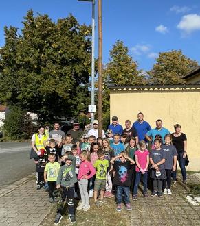 Auch alle Kinder im Markt Pretzfeld waren in diesem Jahr erstmals aufgerufen, die Kirchweih aktiv mitzugestalten. Zur Freude der Organisatoren hatten sich am Samstagnachmittag zahlreiche Kinder eingefunden, um den ersten Kinder-Kirchweihbau aufzustellen. Bevor der prachtvolle Baum mit Unterstützung der Jugend- und Trachtenkapelle Neunkirchen durch die Ortschaft gespielt wurde, konnte jeder seinen gebastelten Schmuck am Baum anbringen. Beim Aufstellen des Kirchweihbaums packten nun auch einige Eltern tatkräftig mit an, sodass der Baum in Rekordzeit in den Himmel ragte.