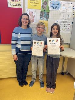 Die 4. Klasse nahm an der Oberfränkischen Mathematikmeisterschaft 2025 teil. Am 16.10.2025 fand die 1. Runde auf Schulebene statt. Zu bewältigen waren knifflige Rechenaufgaben, Logikrätsel und Aufgaben zum räumlichen Vorstellungsvermögen. Alle Teilnehmer hatten viel Spaß bei den Denksportaufgaben und erhielten als Anerkennung eine Urkunde sowie ein kleines Knobelspiel. Schulsieger wurden als bestes Mädchen Laura Rackelmann und als bester Junge Florian Hetz. Beide nehmen nun an der 2. Runde auf Schulamtsebene teil. Wir gratulieren herzlich zu dem tollen Erfolg und drücken die Daumen für die nächste Runde!
