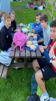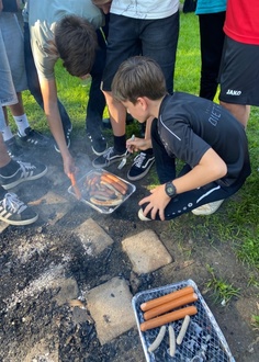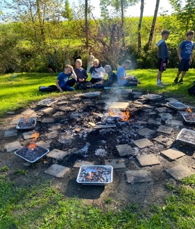 Am Freitag den 19.09.25 machten sich die Klassen 5,6 und 8 der Mittelschule Markt Rettenbach auf den Weg zum Frechenriedener Grillplatz. Bei strahlendem Sonnenschein wanderten die Schülerinnen und Schüler mit ihren Lehrkräften und Schulhund Heidi über Gottenau zu ihrem Ziel. Als wir angekommen sind, war die Erleichterung groß und die Grills wurden ausgepackt. Nachdem die Kohlen heiß waren, konnten die Würstchen gegrillt werden. Die Schüler hatten viel Spaß beim Spielen am Bach, mit dem Fußball oder beim Uno-Spiel. Der Rückweg gestaltete sich etwas zäh, da die Temperaturen etwas gestiegen waren. Letztendlich kamen aber sowohl Schüler als auch Lehrkräfte wohlbehalten wieder in der Schule an.