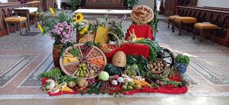 Am ersten Sonntag im Oktober dankten wir Gott für die Ernte des Jahres und erinnerten uns, dass wir alles aus seinen Händen empfangen. Dabei ist auch unser Tun von großer Bedeutung: ohne viele fleißige Hände in Gartenbau und Landwirtschaft hätten wir kein derart großes Angebot in den Regalen der Supermärkte und Lebensmittelgeschäfte. Den vielen Menschen, die für unsere tägliche Nahrung sorgen, sei daher ebenfalls ein Dank gesagt. Ebenso allen, die die schönen Erntealtäre in unseren Kirchen gestaltet und aufgebaut haben. In Markt Rettenbach (Bild) waren dies die Mitglieder des Obst- und Gartenbauvereins sowie des Imkervereins.