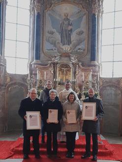 Im Rahmen des Patroziniums vom hl. Otmar wurden in Eutenhausen langjährige Sänger und Sängerinnen des dortigen Kirchenchores geehrt. Melchior Schiegg und Josef Miller erhielten eine Urkunde samt Anstecknadel für 40 Jahre aktives Singen im Kirchenchor, Anneliese Hartmann und Rosi Kreher für 25 Jahre. Zur Feier des Tages sang der Kirchenchor die klangvolle lateinische Messe für Sopran, Alt, Tenor und Bass von Franz Schöpf (1836-1915), eines Vertreters der Romantik.