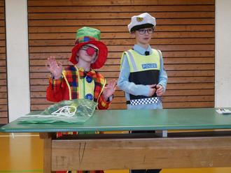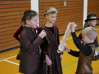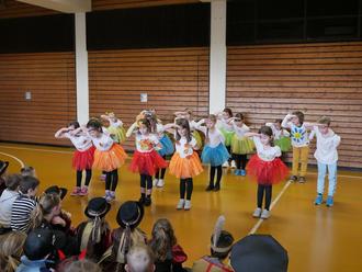 Nach langer Pause war es am Rußigen Freitag wieder soweit und eine bunte Polonaise von verkleideten Schülerinnen und Schülern sowie maskierten Lehrkräften schlängelte sich von Klassenzimmer zu Klassenzimmer durch das ganze Schulhaus bis in die kleine Turnhalle. Eröffnet wurde dort die Faschingsfeier durch einen gemeinsamen Einmarsch der Minigarde Engetried mit Prinzenpaar, der Tanz AG, den Turnerinnen Tori und Valentina sowie den Zauberern Marvin und Vincent. Unter großem Applaus gab das Prinzenpaar ihren Prinzenwalzer zum Besten. Die ehemaligen Schüler Prinzessin Romy und Prinz Tim sind extra an diesem Tag wieder an ihre alte Schule zurückgekehrt. Hofmarschall Bennet führte charmant durch das Programm und die Minigarde zeigte ihren beeindruckenden Gardemarsch. Ein besonderer Programmpunkt in diesem Jahr war die Zaubershow von Vincent (Klasse 3) und Marvin (Klasse 1), den „Manns Brothers“. Mit viel Witz und faszinierenden Zaubertricks entführten die Brüder die ganze Schüler- und Lehrerschaft gekonnt in die Welt der Magie. Die Turnerinnen aus der 4. Klasse Tori und Valentina zeigten in ihrer Turnvorführung, wie beweglich sie sind: Spagat, Brücke, Rad und Handstand stellten keinerlei Probleme dar. Die Arbeitsgemeinschaft Tanz unter der Leitung von Frau Claudia Mayer führte ihren einstudierten Tanz zum Thema Jahreszeiten auf und die Mädchen und Jungen aus der 1. und 2. Jahrgangsstufe wirbelten in glitzernden Kostümen über die Bühne. Zum Ende der Faschingsfeier tanzten die Schülerinnen und Schüler noch gemeinsam zum „Bobfahrer-Lied“ und gingen danach vergnügt in den Pausenhof, wo schon kostenlose Schaumküsse auf die Narrenschar warteten.