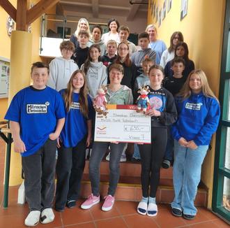 18 Schülerinnen und Schüler der 7. Klasse beteiligten sich am 5. Dezember 2024 wieder an der Aktion "Mitmachen Ehrensache". In verschiedenen Firmen konnten die Schülerinnen und Schüler unter dem Motto "Jobben einen guten Zweck" eine tolle Summe erwirtschaften. Eine Spende von 635 Euro übergab die 7. Klasse an Martina Wersig (links am Scheck) vom Förderverein Kinderhospiz im Allgäu e.V., die sich ganz herzlich für die wertvolle Unterstützung und das Engagement bedankte.