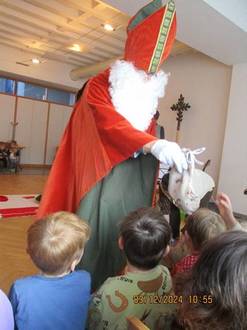Wir begrüßten ihn mit dem Lied "Sei gegrüßt lieber Nikolaus". Freundlich begrüßte auch der Nikolaus die Kinder und lobte sie für alles was sie schon gelernt haben und wie schön es ist, dass die Kinder höflich zu anderen Menschen sind und den Eltern oder Freunden auch gerne helfen. Jedes Kind bekam dann noch ein Nikolaussäckchen geschenkt und wir verabschiedeten den Nikolaus mit dem Klassiker "Lasst uns froh und munter sein".