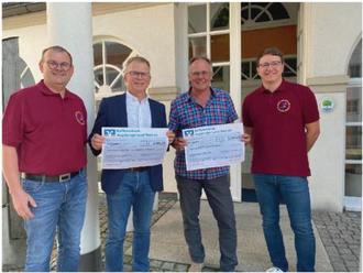 Darüber hinaus spendete die Musikvereinigung weitere 3000 € aus den Erlösen des Fests an die Hochwasserhilfe Dinkelscherben und übergab dies Dinkelscherbens Bürgermeister Kalb.