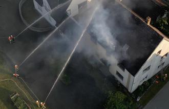 Die Feuerwehr löschte mit drei Rohren das immer wieder aufflammende Feuer auf dem Dach.