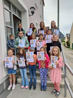 Am Freitag, den 22.09.2023 fand die Abschlussveranstaltung der Ferienaktion „Lesen-was-geht“ bei der Bücherei Häder statt. In diesem Jahr haben 19 Teilnehmer insgesamt 203 Bücher innerhalb von 6 Wochen gelesen und diese auch bewertet. Die meisten Bücher haben unsere Erstklässler gelesen. Das war einen besonderen Applaus und eine zusätzliche kleine Aufmerksamtket in Form eines magnetischen Lesezeichens wert. Das Büchereiteam hatte sich einen zusätzlichen Ansporn für die jungen Leser ausgedacht. Für jedes gelesene Buch durften die Leser einen symbolischen „Buchrücken“ mit Buchtitel und Autor beschriften und an die Innenseite der Büchereitüre ankleben und somit einen Turm „bauen“. Eine insgesamt sehr tolle Leistung wurde erreicht