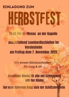 | Freitag, 07.11.2025 | Herbstfest mit Leonhardischießen 18:00 Uhr |