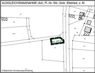 1. | Der Geltungsbereich wurde um die Flächen zum Ausgleich der Heckenpflanzung, sowie der Ausgleichsflächen zum Bebauungsplan ergänzt: Heckenpflanung-Ausgleich FlNr. 164, Gemarkung Ettelried: |