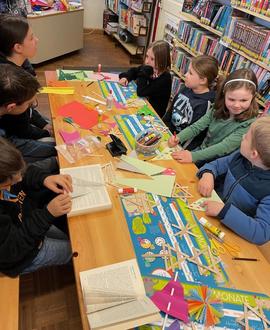 Viel los war am Samstagnachmittag in der Bücherei Oberschöneberg als es wieder hieß: Bastelaktion für den Advent und Weihnachten. Das Jugendteam hat sich wieder tolle Bastelideen einfallen lassen. Aus Muffin-Förmchen wurden Sterne gefaltet, aus Pappteller konnte ein Tür- oder Adventskranz gebastelt werden, der sicher nicht nadelt und manche wollte aus alten Büchern einen Christbaum falten. Der musste allerdings zu Hause noch weiter gefaltet werden, da die Zeit bei so viel Möglichkeiten dann doch zu kurz war. Ganz begeistert waren alle bei der Sache und zufrieden nahmen die Kinder und Erwachsene ihre Kunstwerke mit nach Hause. Die Musterstücke schmücken jetzt den Büchereiraum.