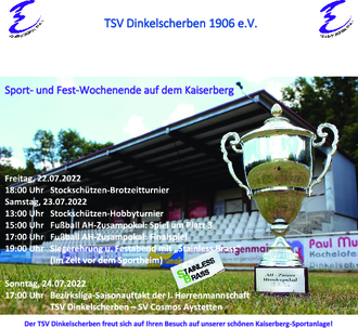 | Der TSV Dinkelscherben freut sich auf Ihren Besuch auf unserer schönen Kaiserberg-Sportanlage! |
