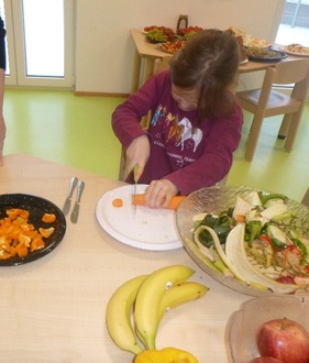 Am Dienstag, den 16.01.2024 bot der Elternbeirat wieder für alle Kindergarten- und Krippenkinder ein gesundes Frühstück an. Natürlich durften die Kinder beim Zubereiten, Gestalten und Herrichten in unserer Mensa mithelfen. Obst und Gemüse wurde geschält und geschnitten. Zum Schluss wurden alle Lebensmittel in der Mensa als Büffet schön angerichtet. Immer zwei Gruppen haben in unserer Turnhalle gegessen und konnten sich bedienen. Hierbei konnten Sie selbstständig ihre Brote schmieren und belegen.