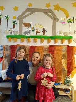 Die Sarah aus der Kath. Kita St. Ulrich in Oberschöneberg, ihre Schwester Lena und ihr Opa haben ganz fleißig Holzsterne gebastelt. Diese wurden dann beim Rieder Adventsweg gegen eine freiwillige Spende für die Kita St. Ulrich in Oberschöneberg angeboten. Wir freuen uns sehr über die Spende für unseren Kindergarten in Höhe von 150€.