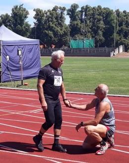 31. Juli: Mit gemischten Gefühlen waren Jürgen Hinterstößer und Alfred Just, die in der Altersklasse M60 gemeldet waren, zu den bayerischen Seniorenmeisterschaften nach München gefahren. Jürgen wollte es noch besser machen als zwei Wochen zuvor bei den bayerischen Altersklassenmeisterschaften Wurf. Verletzungspech verfolgte Alfred letztes Jahr und auch zu Beginn dieses Jahres. So wussten beide Athleten nicht recht, was der Wettkampftag bringen würde.