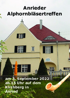 Am kommenden Samstag, den 3. September 2022 findet auf dem Kirchberg in Anried unser Alphornbläsertreffen statt. Hierzu laden wir alle Interessierten recht herzlich ein.