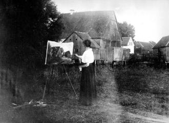 Anna Stobitzer mit Stafflei vor der Nussermühle